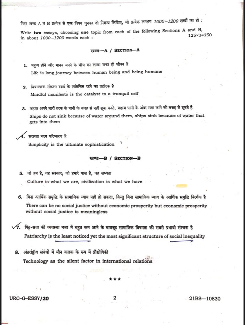 Essay Question Paper Upsc Civil Services Ias Exam Mains 2020 Insightsias